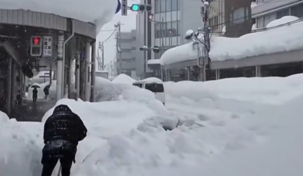 Masat e forta të ftohta të ajrit kanë shkaktuar reshje të dendura dëbore në javët e fundit përgjatë bregdetit të Detit të Japonisë, me disa zona që kanë regjistruar më shumë se dyfishin e sasisë normale për sezonin.