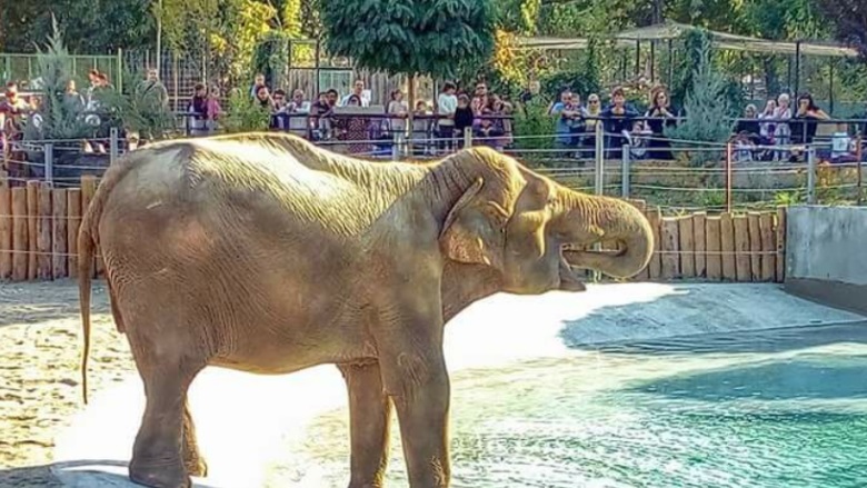 Ngordh një elefant në Kopshtin Zoologjik të Shkupit