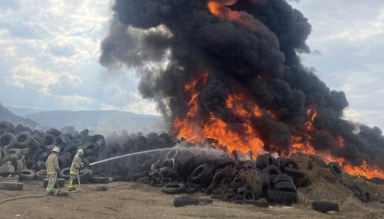 Zjarr i madh në Zhelinë të Tetovës, digjen goma të vjetra