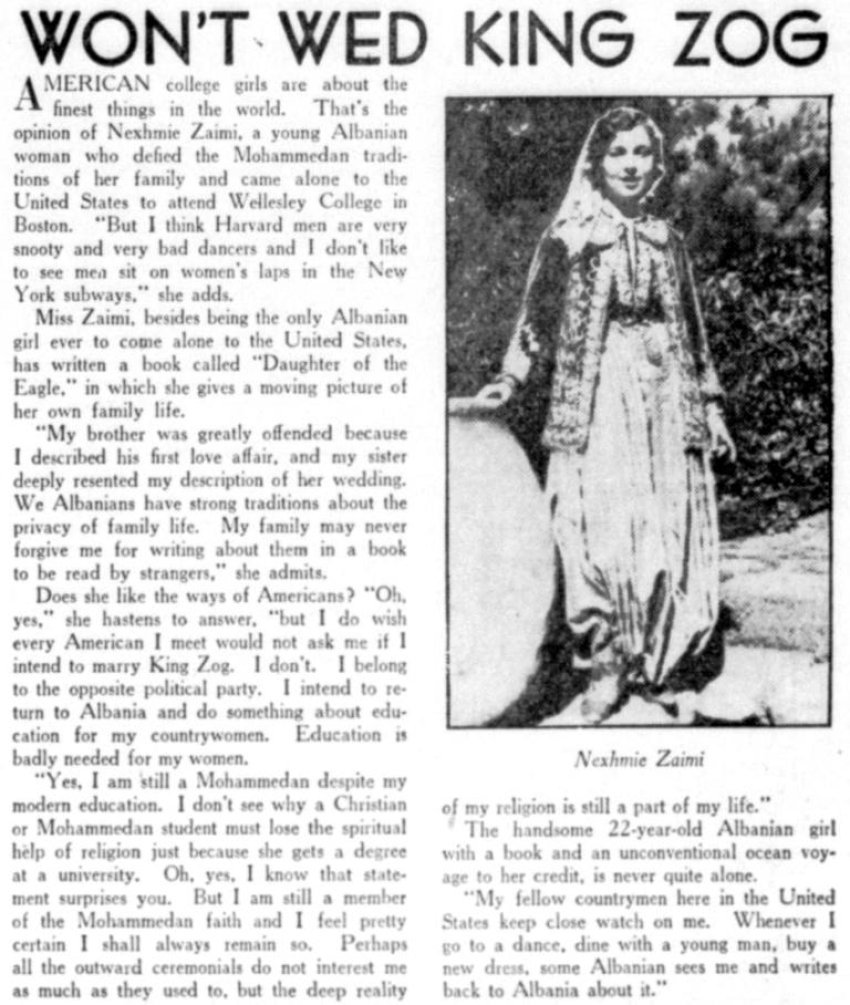 Gazeta amerikane (1937)/ “Familja ime mund të mos më falë kurrë që kam shkruar për ta në një libër…” — Intervista me Nexhmie Zaimin